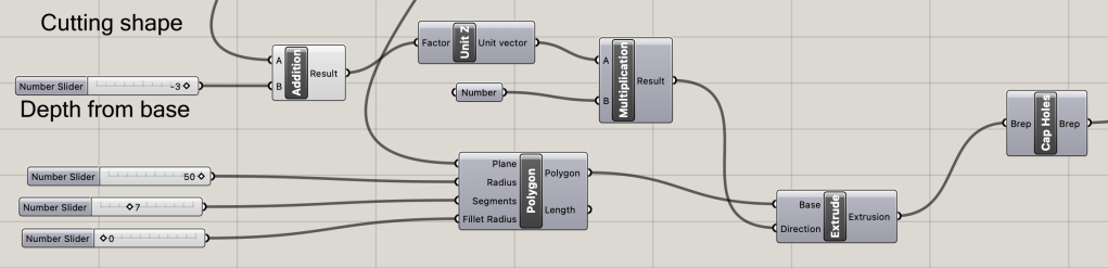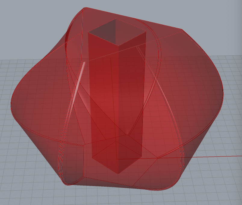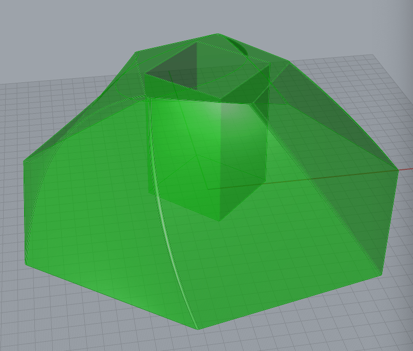 The geometries for this post will be created from the “L2_custom_geometry” grasshopper file on the GitHub page. The outside shape is variable with an hole to contain whatever is desired inside. The outisde is the loft produce of three of these variable shapes above one another, while the inside is a removal extrusion with a variable depth away from the bottom of the object.