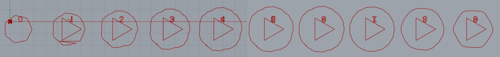As can be seen by all of the nodes, adding text to the slices is the most complicated and intensive part. Each slice will be referenced as a surface for the text to be placed upon. The new placement on the X-axis will be scaled down to become a whole number that is transformed into a marking number that can then become text on each slice. There is a slider for setign text size. A transofromation section for moving the text is incorporated if the center slice will be a hole. Something that should be noted of the base line input of the TextOnSurface Node, is that the text will be placed on the center of the line provided, so the line from the origin to the centroid of the slice has to be doubled to place the text in the desired area.
