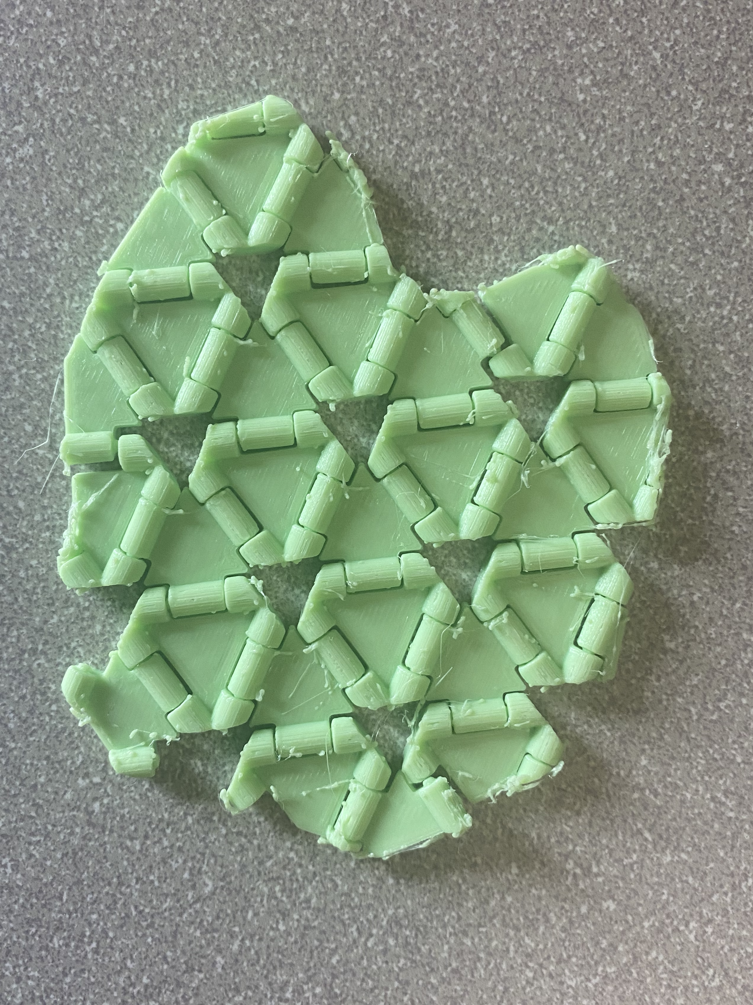 The final project in my computational fabrication class is a self-study project where a form of computation will be used to fabricate the design. In my case, I will be creating a print-in-place hinge based FDM printed fabric. As always, the codes on my GitHub, under the name “TriangleFabric” 1 & 2.